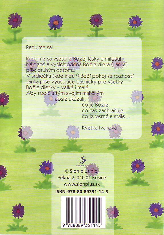Radujme sa! Radujme sa všetci z Božej lásky a milosti! Nájdené a vyslobodené Božie dieťa (Janka) píše druhým deťom… V srdiečku (kde inde?) Boží pokoj sa rozhostí. Janka píše vyučujúce básničky pre všetky Božie dietky – veľké i malé. Aby rodičia tým svojim maličkým lepšie ukázali, čo je Božie,