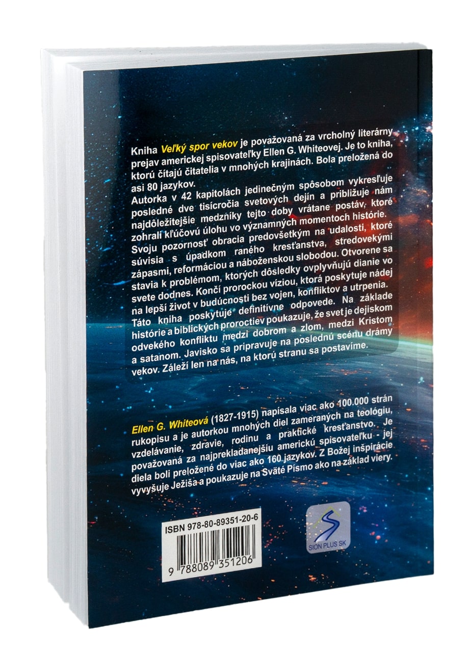 Nahliadnite do zákulisia odvekého konfliktu medzi dobrom a zlom. Kniha „Veľký spor vekov“ opisuje posledné dve tisícročia svetových dejín, a zameriava sa na najdôležitejšie medzníky tejto doby. Dotýka sa svetovej politiky, cirkevnej histórie, objasňuje aktuálnu situáciu vo svete a končí prorockou víziou, ktorá sa týka budúcnosti. Bola preložená do vyše 80 jazykov a len od roku 2011 z nej bolo vydaných už viac ako 150 miliónov výtlačkov.