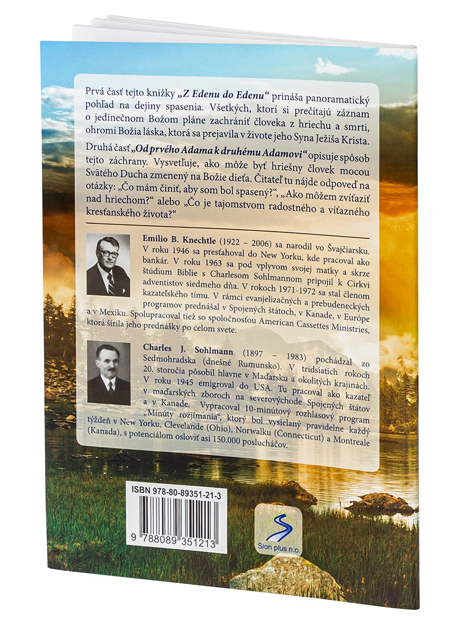 Prvá časť tejto knižky „Z Edenu do Edenu“ prináša panoramatický pohľad na Boží plán spasenia. Všetkých, čo sa začítajú do príbehu o jedinečnom Božom pláne na záchranu človeka pred hriechom a smrťou, ohromí Božia láska, ktorá sa prejavila v živote jeho Syna Ježiša Krista. Druhá časť „Od prvého Adama k druhému Adamovi“ opisuje spôsob tejto záchrany. Názorne vysvetľuje,ako sa môže z hriešneho človeka pôsobením Svätého Ducha stať Božie dieťa. Čitateľ tu nájde aj odpoveď na otázky „Čo mám urobiť, aby som bol spasený?“, „Ako môžem zvíťaziť nad hriechom?“ alebo „Čo je tajomstvom radostného a víťazného kresťanského života?“